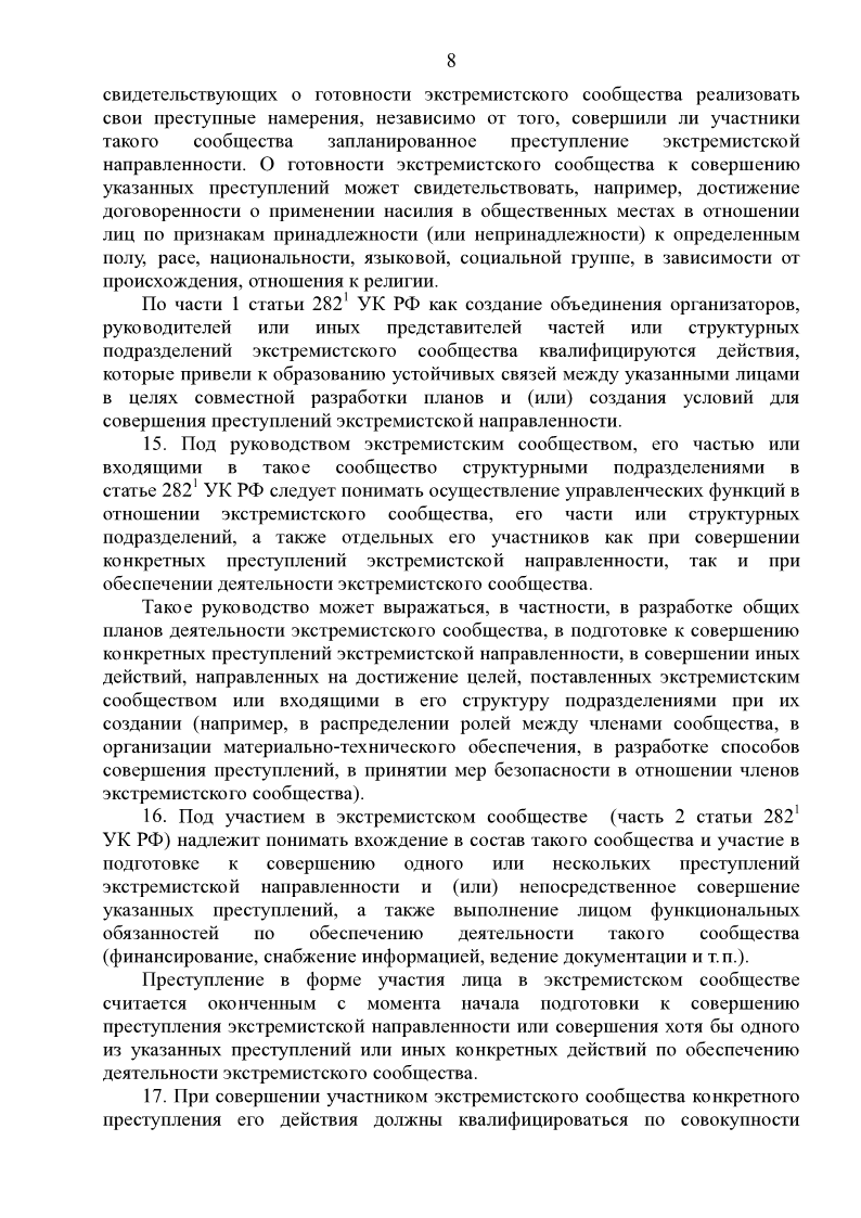 Постановление Пленума Верховного суда РФ от 28.06.2011 № 11 «О судебной практике по уголовным делам о преступлениях экстремистской направленности»